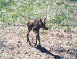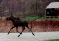 A running moose, photographed from a bouncing car, courtesy of Debbie Fletcher.