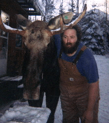 Jeff Kinzel and a moose, courtesy of Jeff himself.
